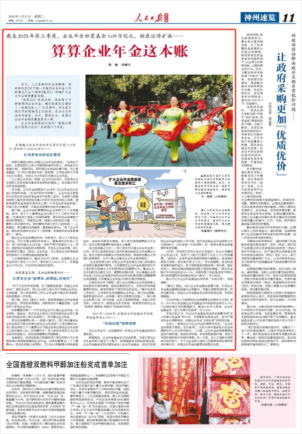 人社部数据显示,截至2025年三季度,全国建立企业年金的用人单位17.5万户,参加职工3332.05万人,积累基金4.09万亿元,补充养老功能初步显现。