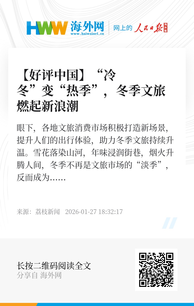 冬季文旅的爆火,本质上是场景创新与需求升级的同频共振。各地摒弃单一业态的局限,通过多元融合,打破地域与业态壁垒,构建起“全时段、全链条、全感官”的冬季文旅生态,让冬季从“观光游”升级为“体验游”,让每一片雪花都承载着浪漫想象,每一味美食都蕴含着文化基因,每一处烟火都传递着生活温情,冬季文旅便拥有了穿越季节的持久魅力,为中国文旅高质量发展注入了源源不断的冬日动能。(婧蓝)