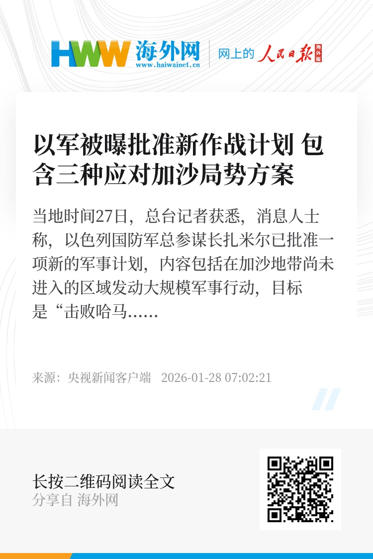 当地时间27日,总台记者获悉,消息人士称,以色列国防军总参谋长扎米尔已批准一项新的军事计划,内容包括在加沙地带尚未进入的区域发动大规模军事行动,目标是“击败哈马斯”。相关行动将依据以色列政治层级的最终指示实施。