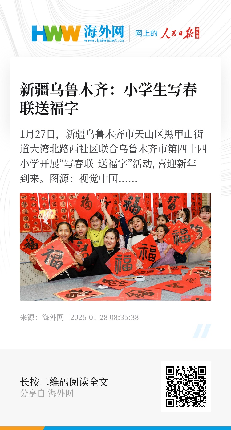 32926703,.新疆乌鲁木齐:小学生写春联送福字,.2026-01-28 08:35:38,.204555,.陈菲扬、卢思宇