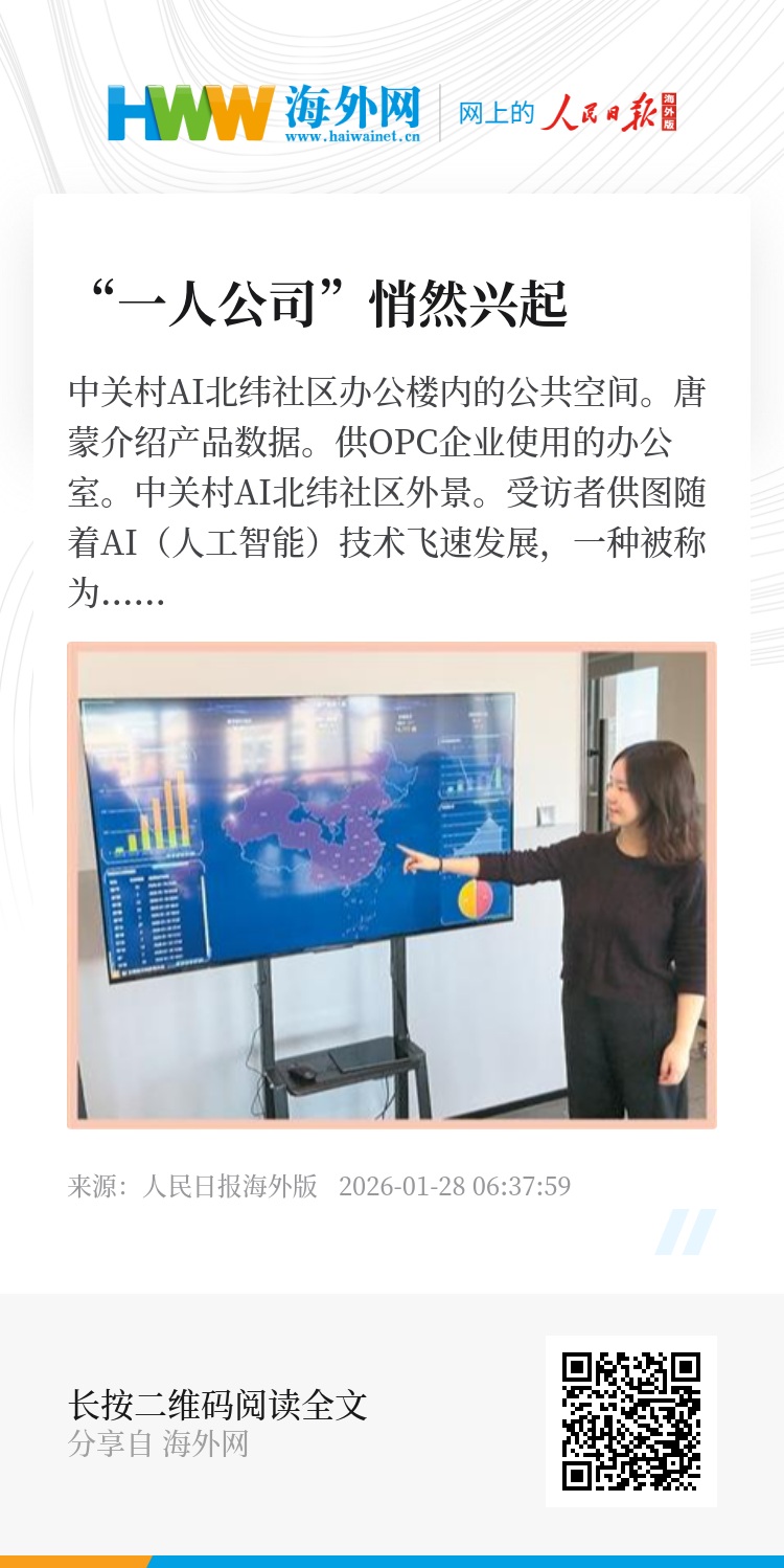 位于北京市海淀区的中关村AI北纬社区,在2025年12月发布人工智能OPC服务计划,提出探索打造“人工智能OPC友好社区”。近日,本报记者来到这里,实地感受OPC创业氛围,探访AI创业的多样形态。