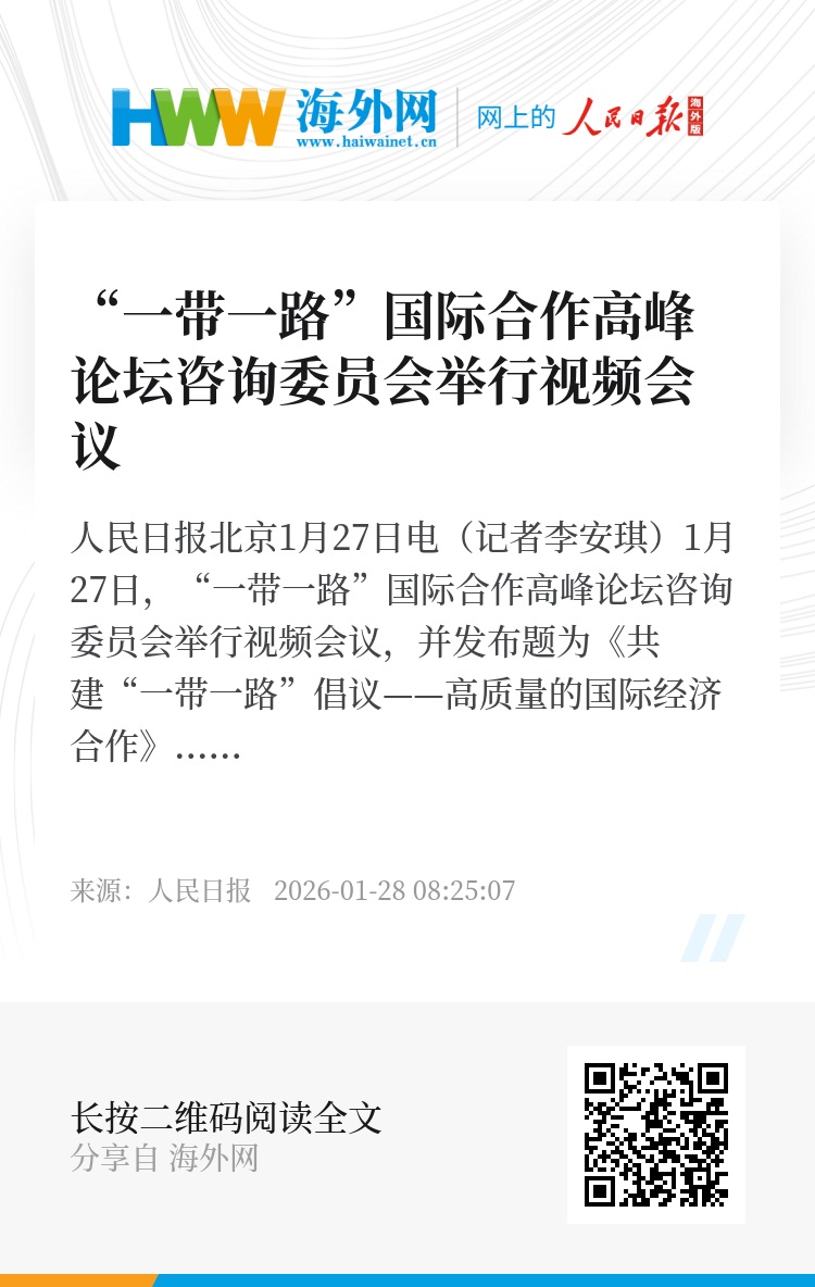 人民日报北京1月27日电(记者李安琪)1月27日,“一带一路”国际合作高峰论坛咨询委员会举行视频会议,并发布题为《共建“一带一路”倡议——高质量的国际经济合作》的研究报告。