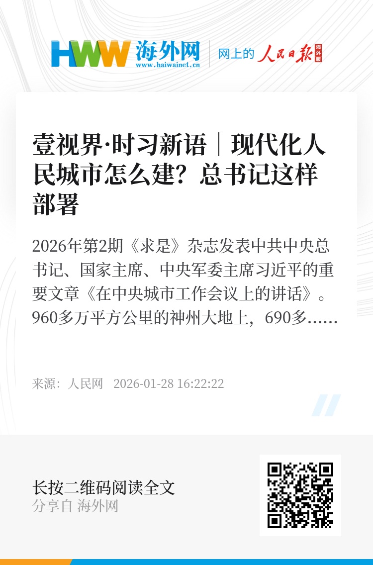 2026年第2期《求是》杂志发表中共中央总书记、国家主席、中央军委主席习近平的重要文章《在中央城市工作会议上的讲话》。