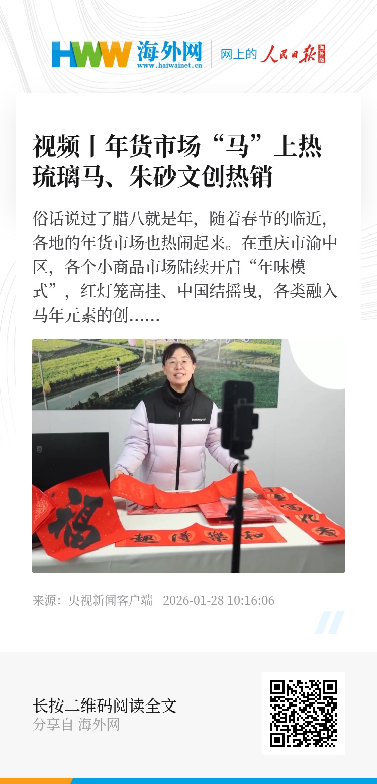 走进渝中区的一个小商品市场,浓郁的节日氛围扑面而来。红灯笼串联起廊道,福字贴、生肖拉花相映成趣,耳畔不时传来商家“马到成功”“马上有福”等吉祥语的吆喝声。而市场里的马年主题商品区更是人气爆棚,从传统民俗饰品到新潮文创产品,品类丰富、创意十足,满足了不同年龄段消费者的需求。