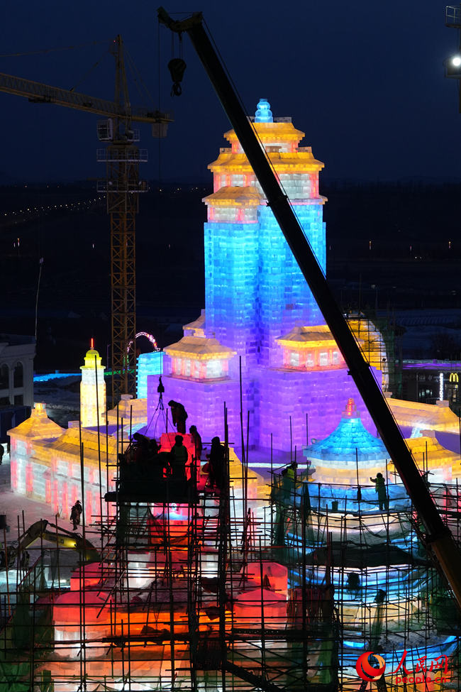 冰为砖、水为泥、灯为饰,打基础、做钢架、砌冰墙……最忙时,曲超和5500余名工人夜以继日,在摄氏零下的气温中“玩冰嬉雪”,睫毛上全是凝结的霜花。“冰雪是短暂的艺术,一旦进入冰雪施工季,都得紧抓时间,尽量把施工时间压缩到最短,这样留给游客欣赏的时间就会更长。”曲超说。