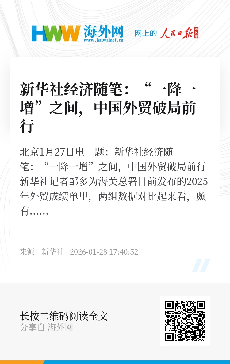 新华社北京1月27日电 题:新华社经济随笔:“一降一增”之间,中国外贸破局前行