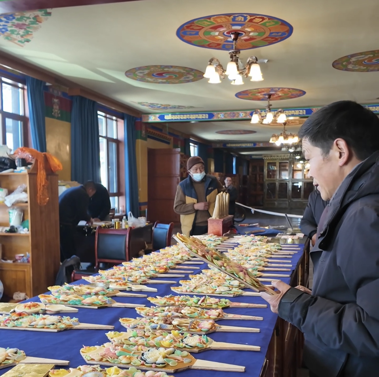 “哪种图案寓意更好?”“‘八吉祥徽’和‘和睦四瑞’能搭配吗?”问题接连不断,伦珠忙得几乎脚不沾地。他介绍,合作社于2025年11月成立,汇集了30多位手艺精湛的老师傅。为应对新年需求,大家提前一个月便开始制作,没想到开售仅3天,1500多对酥油花便已售出,备货几乎告罄。