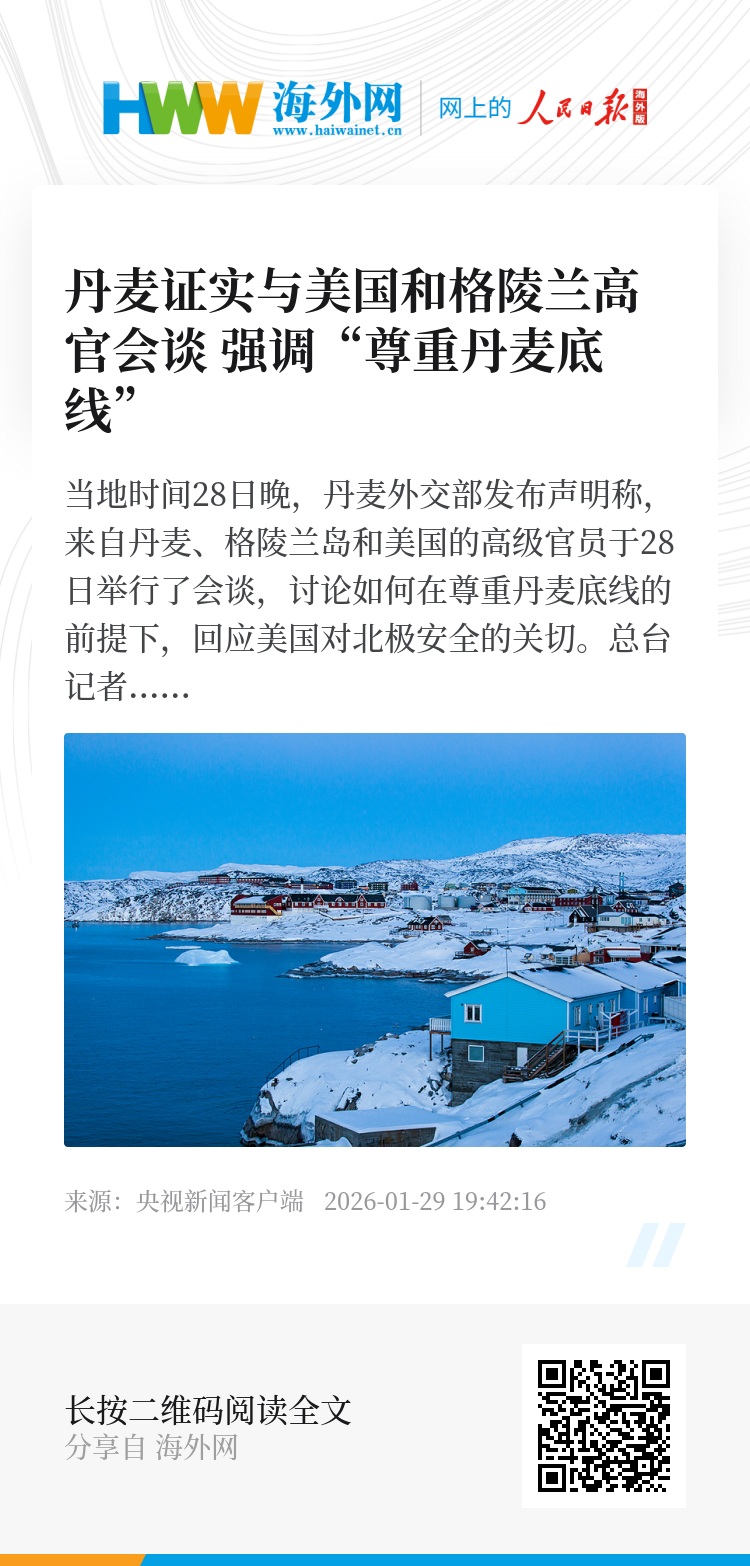 此前,美国国务卿鲁比奥28日表示,围绕格陵兰安全安排的谈判已于当天启动,美方、格陵兰岛以及丹麦代表正在进行“技术层级”的磋商,并称相关对话“此刻正在进行中”。(总台记者 郝晓丽)