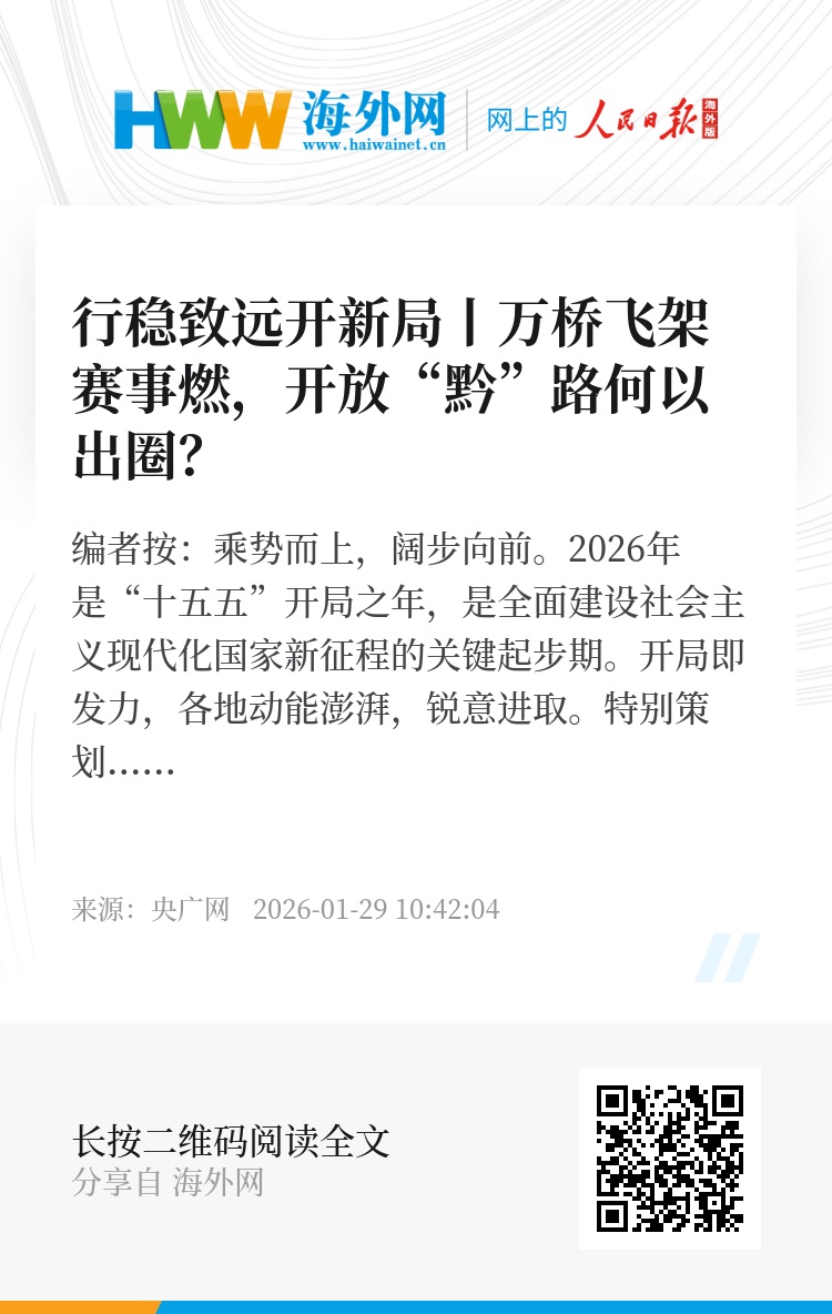 编者按:乘势而上,阔步向前。2026年是“十五五”开局之年,是全面建设社会主义现代化国家新征程的关键起步期。开局即发力,各地动能澎湃,锐意进取。央广网特别策划推出《行稳致远开新局》,讲述过去五年来各地迎难而上、砥砺奋进的万千气象,呈现经济实力、科技实力、综合国力跃上新台阶背后的发展肌理,以走在前、作示范、挑大梁的责任担当和发展韧性,为“十五五”开好局、起好步凝心聚力,不断开创中国式现代化建设新局面。
