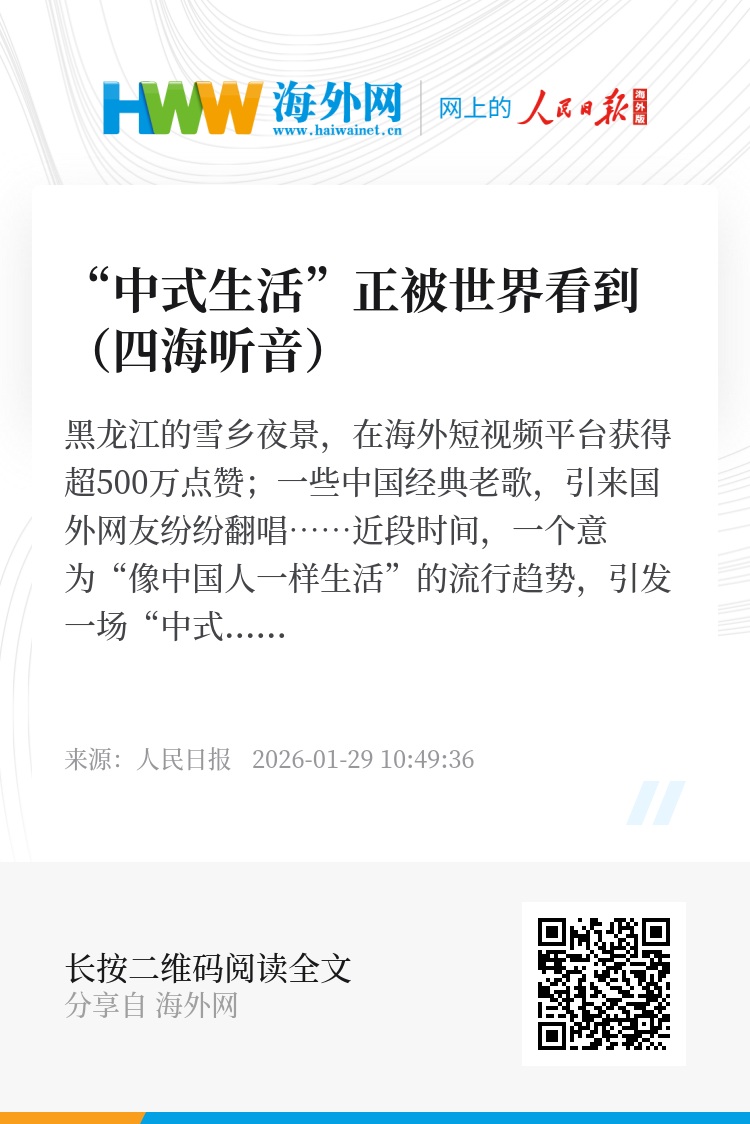 黑龙江的雪乡夜景,在海外短视频平台获得超500万点赞;一些中国经典老歌,引来国外网友纷纷翻唱……近段时间,一个意为“像中国人一样生活”的流行趋势,引发一场“中式生活”模仿风潮。“中式生活”正被世界看到,世界正日益“爱上”中国。
