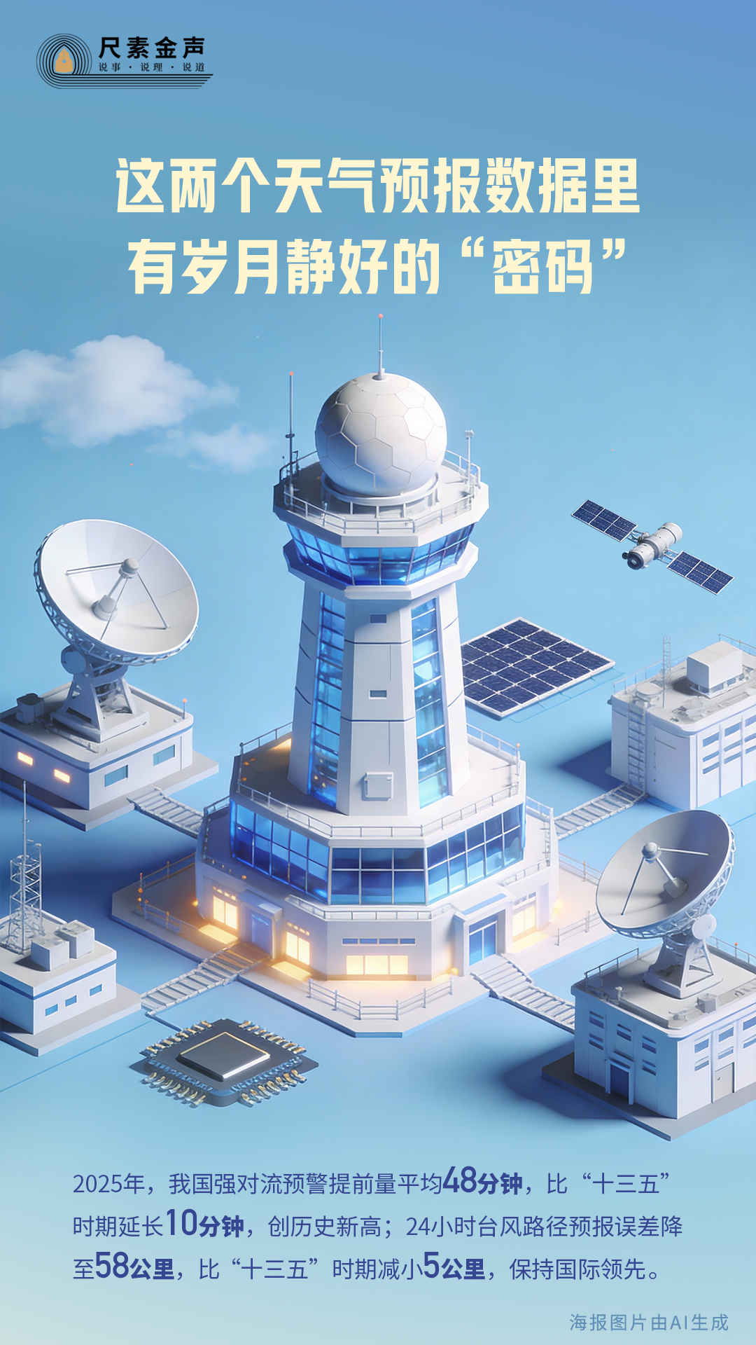 守护岁月静好,不被风雨所扰。“十四五”时期,气象部门扛起责任,不负众望,加快推进气象科技能力现代化、社会服务现代化,提升综合实力,预报提前量不断摸“高”、够“顶”,交出一份亮丽答卷。2026年,气象部门将继续推进科技创新,夯实业务核心能力,提升预报预测能力,筑牢气象防灾减灾第一道防线,更有力守护生命安全、生产发展、生活富裕、生态良好。