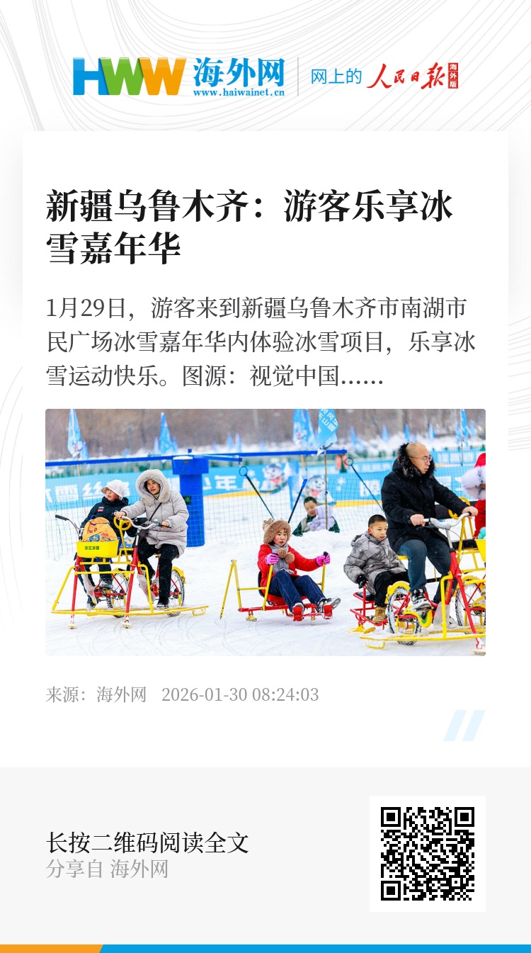 32927241,.新疆乌鲁木齐:游客乐享冰雪嘉年华,.2026-01-30 08:24:03,.204555,.陈菲扬、张振