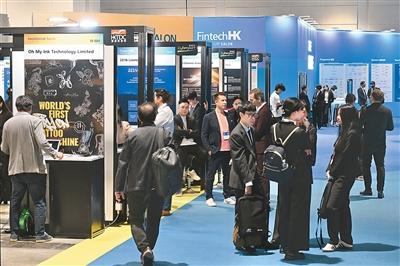 第十九届亚洲金融论坛现场特设多个展区,让与会者进行项目对接。图为与会者参观论坛展览。中新社记者 李志华摄
