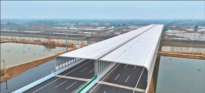 冬日暖阳下,双柳长江大桥北岸接线工程上,一个银色的全封闭式保护罩闪闪发光。