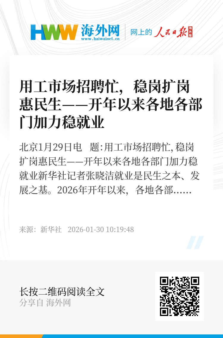 就业是民生之本、发展之基。2026年开年以来,各地各部门谋良策、出实招,出台一系列稳就业政策举措,以密集的招聘活动、暖心的就业服务、多样的技能培训,不断增强人民群众获得感幸福感安全感,为经济社会发展、保障改善民生提供有力支撑。