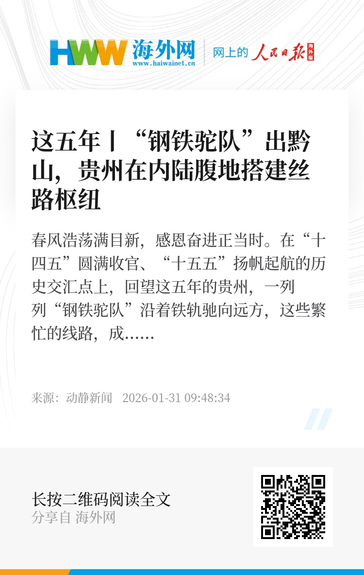 春风浩荡满目新,感恩奋进正当时。在“十四五”圆满收官、“十五五”扬帆起航的历史交汇点上,回望这五年的贵州,一列列“钢铁驼队”沿着铁轨驰向远方,这些繁忙的线路,成为贵州重塑区位角色、深度融入“一带一路”倡议的战略支点。