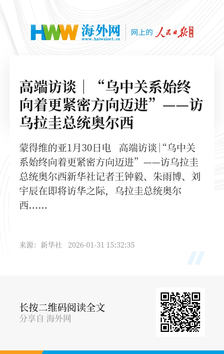 新华社蒙得维的亚1月30日电 高端访谈|“乌中关系始终向着更紧密方向迈进”——访乌拉圭总统奥尔西