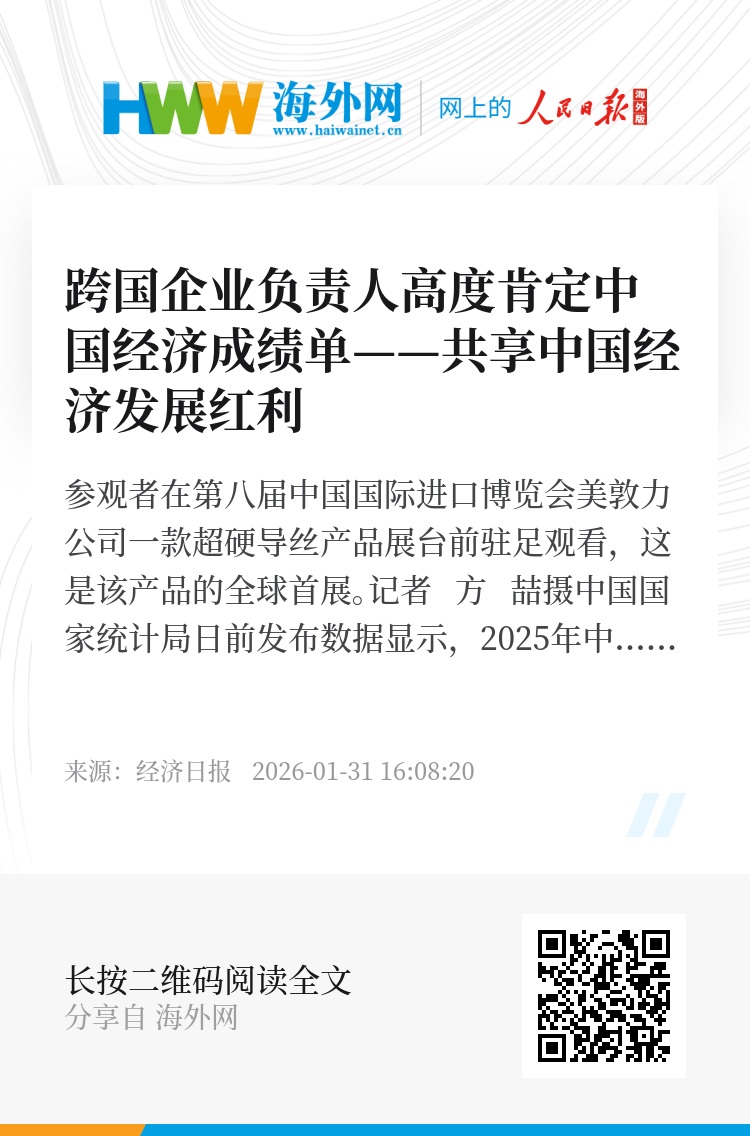 2025年,中国经济增势稳健,高质量发展基础不断夯实,在创新驱动、产业提质、数字赋能、绿色转型等方面取得不少新进展。多位跨国企业负责人认为,中国经济韧性强、底气足,这种建立在结构优化基础上的可持续增长,更具长期价值。