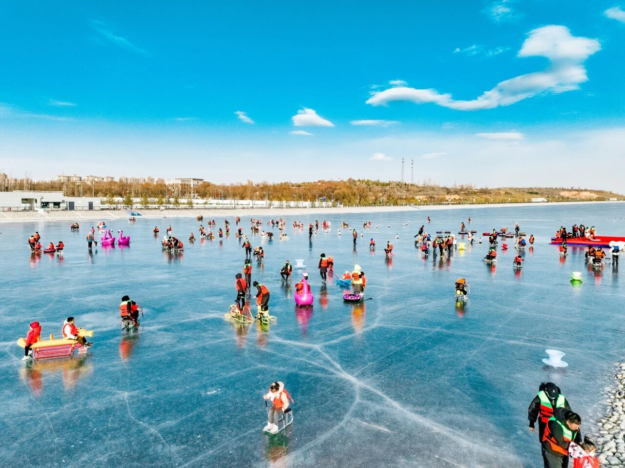 在榆林市科创新城的水上运动中心,光洁的冰面同样热闹非凡,工作人员正为即将到来的冰雪嘉年华做最后准备。项目负责人张伟介绍,中心自开放以来,已成为市民和游客体验冰雪乐趣的重要场所。