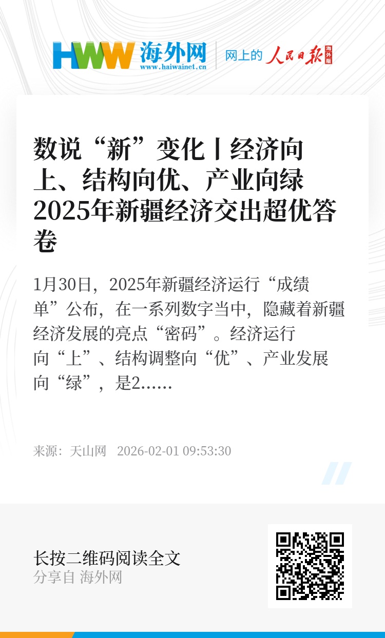 1月30日,2025年新疆经济运行“成绩单”公布,在一系列数字当中,隐藏着新疆经济发展的亮点“密码”。经济运行向“上”、结构调整向“优”、产业发展向“绿”,是2025年新疆经济运行的主要亮点。具体体现在哪些方面?今天的《数说“新”变化》一起来看看。