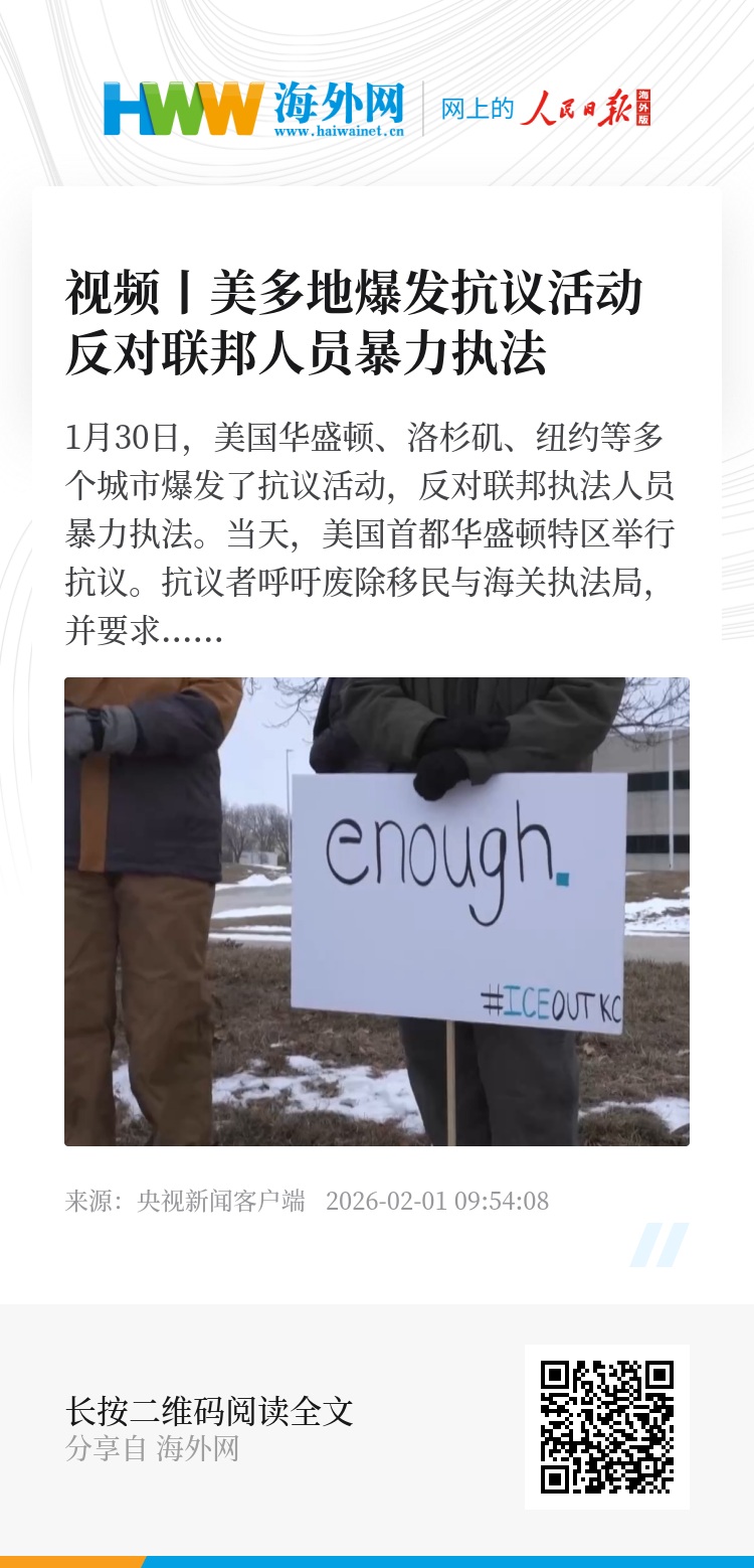 此外,全美多地的部分企业和商店30日宣布关门停业,加入抗议美国移民与海关执法局的队伍。据称,此次关门行动是美国全国性抗议活动的一部分。