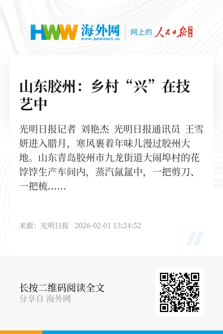 “近年来,胶州市针对非遗项目制定了专项保护计划,不仅协助黑氏花馍、罗家村糖瓜申报非物质文化遗产代表性项目,还为传承人提供技艺交流平台、扶持建设标准化生产车间等。”胶州市委宣传部副部长耿大海说,随着“非遗+产业+就业+旅游”的发展模式在乡村落地生根,传统技艺成为村民增收、乡村繁荣的助推器。