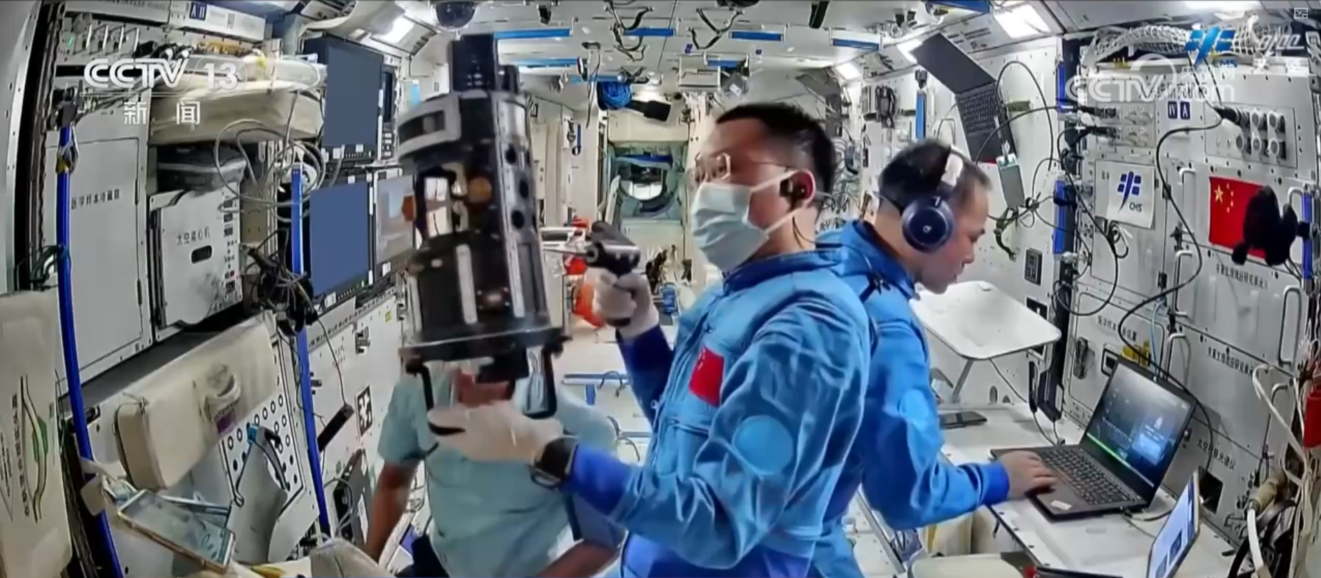 在站内环境监测及站务管理方面,乘组完成了风速及温度测量、个人噪声暴露剂量测量、舱内环境整理等多项工作,持续守护太空家园的宜居环境。