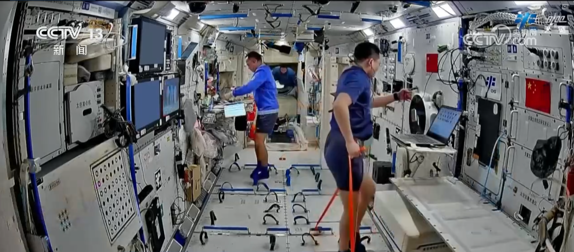 上周,三名航天员按计划开展了多项医学检查,包括动态心电血压、无创心功能检查,腹部、血管、肌肉等超声检查,骨密度测量,听力测试等项目,获取相关数据,密切掌握在轨健康状况。同时,积极开展在轨锻炼,对抗失重生理效应。