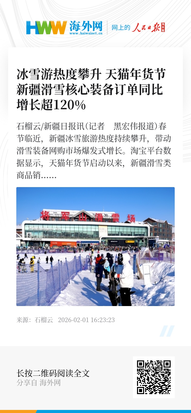 近年来,依托新疆物流供应链系统性提升,淘宝天猫持续完善当地仓储、运输等配套服务,配送能力显著提升,为新疆冰雪消费热潮奠定物流根基,也推动冰雪“冷资源”加速转化为带动发展的“热经济”。
