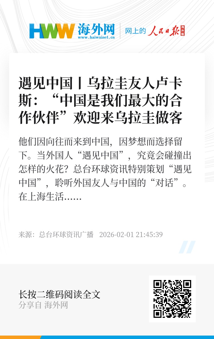 近年来,中乌两国政治互信日益加深,经贸合作逐步扩大。卢卡斯期待未来两国继续深化关系,在文化和人员交流领域取得更多积极进展。