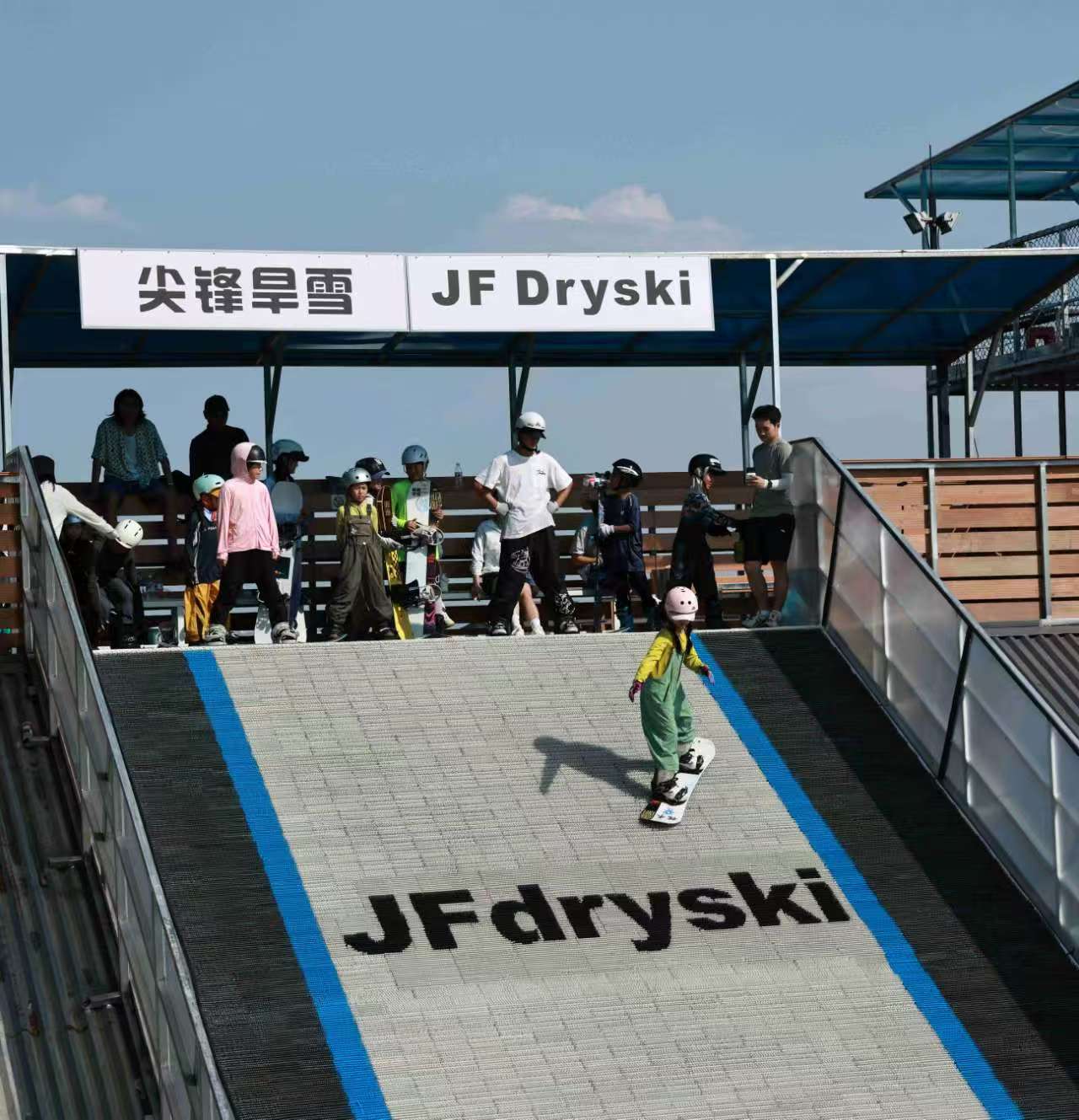 在成都新都,尖锋旱雪四季滑雪场内热潮涌动——100米长的雪道上,身着专业滑雪服的运动员高速滑行,雪板划过“雪面”发出“沙沙”声,脚下是一簇簇排列整齐的塑料“金针菇”。这些“金针菇”是尖锋自主研发的滑雪新设施。