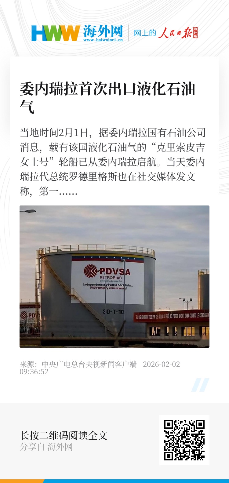 当天委内瑞拉代总统罗德里格斯也在社交媒体发文称,第一艘载有液化石油气的轮船成功启航,实现该国第一次液化石油气出口。(总台记者 马天静 宫祥诚)