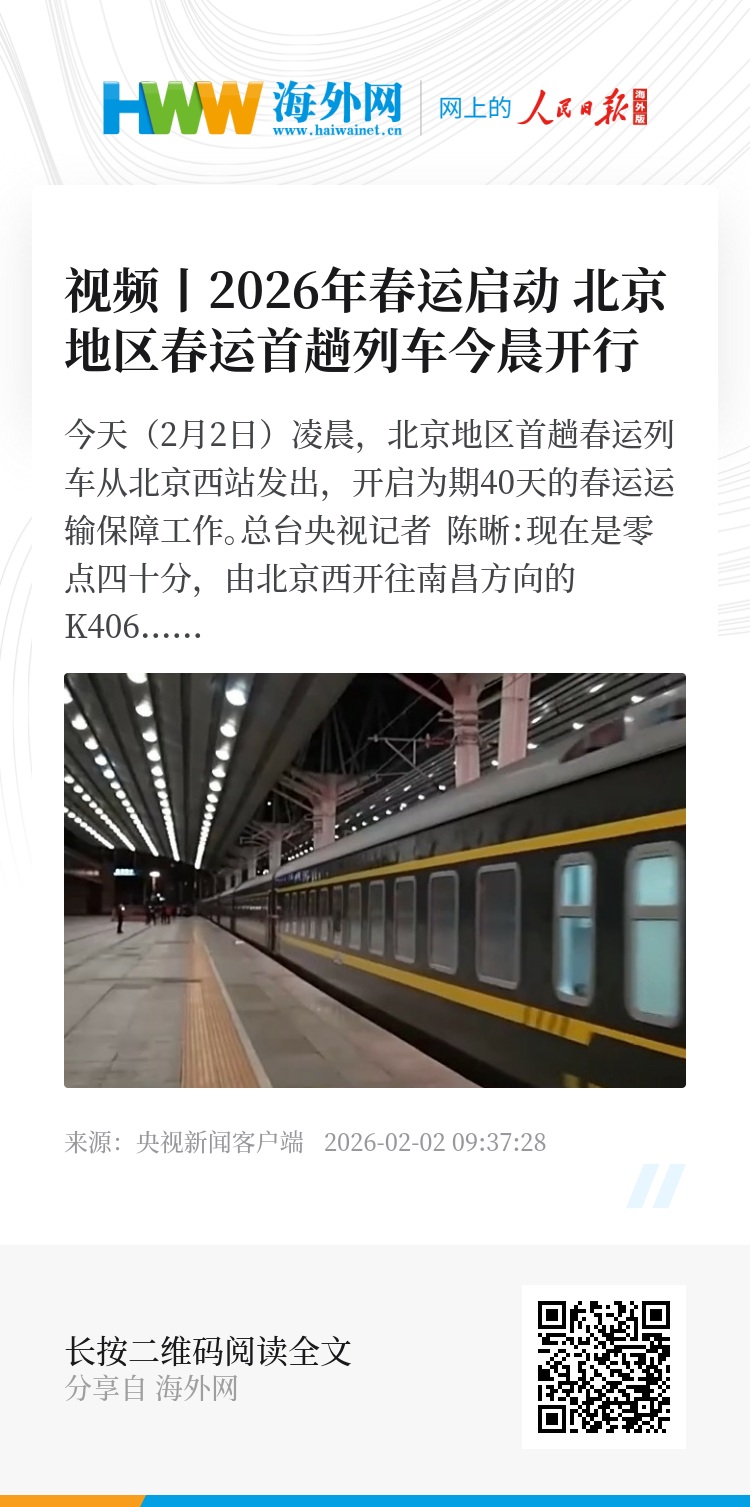 今天(2月2日)凌晨,北京地区首趟春运列车从北京西站发出,开启为期40天的春运运输保障工作。