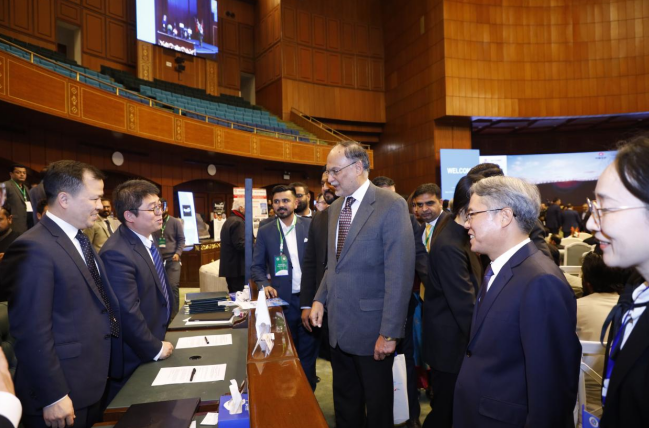图:姜再冬大使与巴计划部长伊克巴尔参观云采平台展示