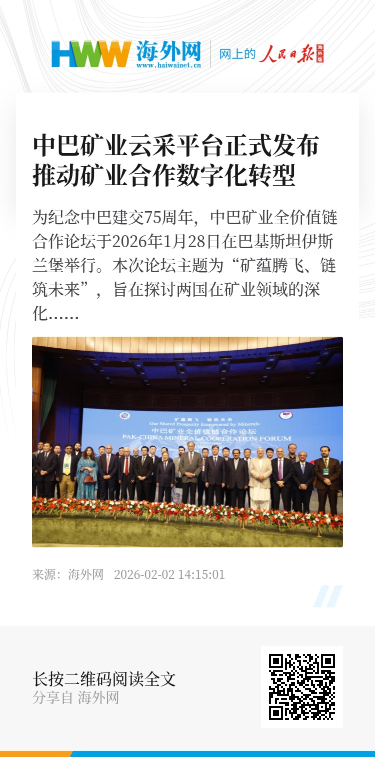 为纪念中巴建交75周年,中巴矿业全价值链合作论坛于2026年1月28日在巴基斯坦伊斯兰堡举行。本次论坛主题为“矿蕴腾飞、链筑未来”,旨在探讨两国在矿业领域的深化合作。论坛期间,中冶集团铜锌有限公司正式发布了“中巴矿业云采平台”。
