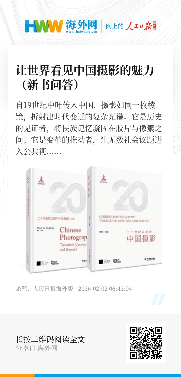 此举已初见回响,本书中英文版已被德国海德堡大学图书馆等收藏,标志着其得到国际知识界关注。出版社告诉我,接下来,他们将继续积极推动本书的多语种版权输出。我们期待以摄影为桥梁,促进中外文化交流,让中国的历史经验与视觉创造,为人类共同的文化图景贡献其特有的篇章。(张鹏禹 叶 子)