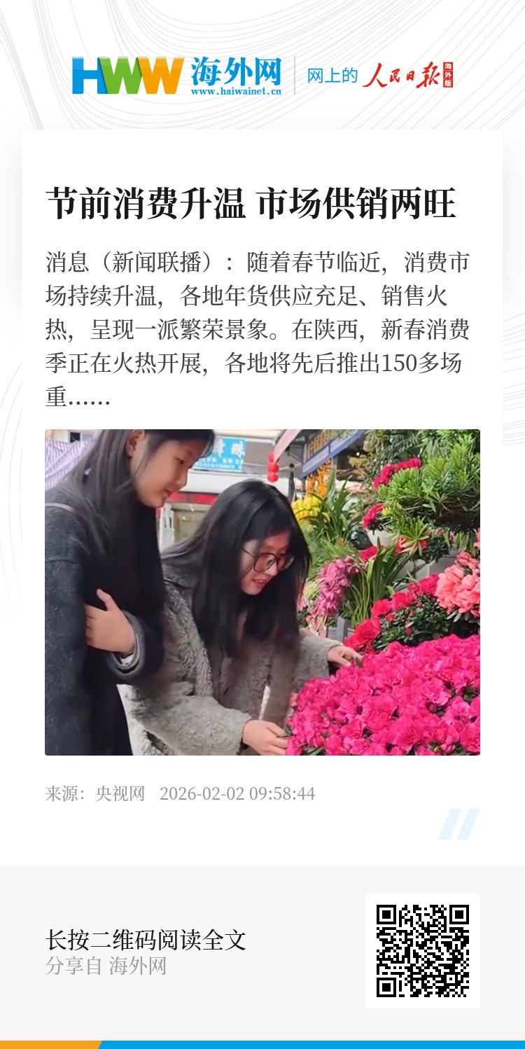 特色商品产销两旺。在广东广州,岭南花卉市场今年供应超过40个大类、上百个品种的鲜花,满足市民年花购买需求,鲜切花日销高峰达150万枝。在广西南宁,市场花卉区人流如织,蝴蝶兰、年桔、黄金果、马蹄莲被商户陈列在醒目位置。在上海,一些商圈推出主题新春市集,为市民采购年货提供更多选择。在河北平山,新春年货节设置六大主题展区,汇聚了上千种本地特色产品,现场制作的糖画、糕点等传统年味美食吸引了不少顾客。在贵州桐梓的乡村集市上,糖果、干货、果蔬摊位沿街道铺开,十里八乡的村民们会聚到这里挑选年货。
