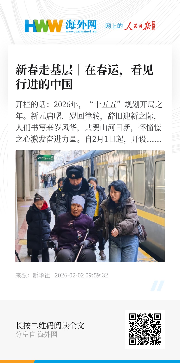 2026年春运即将按下开始键,“全球最大规模人口迁徙”图册将掀开新的一页。平安顺利出行,是民之所望、心之所向。