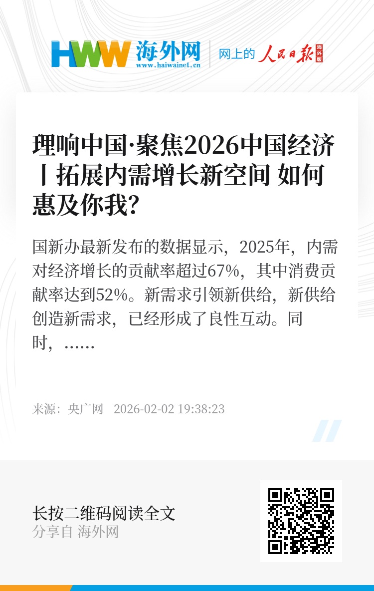 国新办最新发布的数据显示,2025年,内需对经济增长的贡献率超过67%,其中消费贡献率达到52%。新需求引领新供给,新供给创造新需求,已经形成了良性互动。同时,国内供强需弱的矛盾比较突出,中国经济如何向“内”求变?2026年扩大内需工作应从哪些方面着手,最终惠及民生?央广网邀请相关专家进行解读。