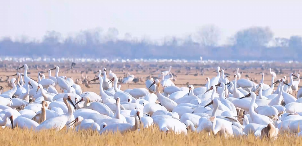 沿长江而下,洞庭湖的洲滩间,万鸟齐飞铺展出“江南泽国”的生态画卷。