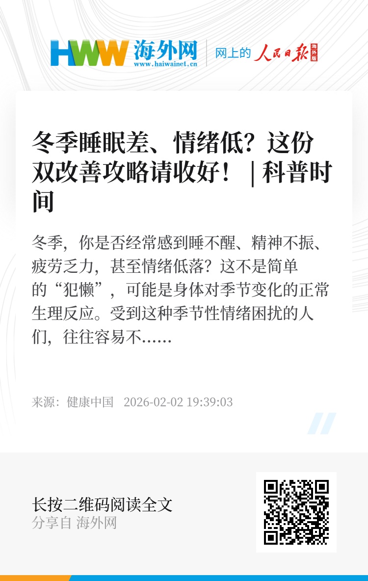 冬季昼短夜长、气温骤降,人体的生物钟被打乱,导致人们白天更容易感到困倦和精神萎靡,这些生理变化可能会引发一系列睡眠和情绪问题。