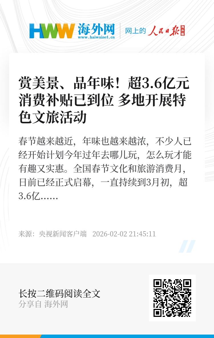 春节越来越近,年味也越来越浓,不少人已经开始计划今年过年去哪儿玩,怎么玩才能有趣又实惠。全国春节文化和旅游消费月,日前已经正式启幕,一直持续到3月初,超3.6亿元文旅消费券及各类消费补贴已到位,实打实送福利、添年味。各地早就备好了满满当当的“文旅大餐”,赏美景、品年味,这个春节能解锁哪些不一样的新春玩法?