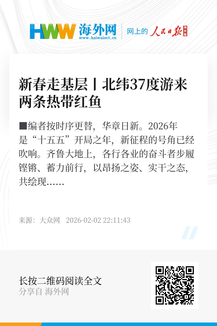 时序更替,华章日新。2026年是“十五五”开局之年,新征程的号角已经吹响。齐鲁大地上,各行各业的奋斗者步履铿锵、蓄力前行,以昂扬之姿、实干之态,共绘现代化强省建设的壮美画卷。大众日报·大众新闻2月2日起推出“新春走基层”全媒体报道专栏,记者奔赴一线、扎根基层,聆听平凡个体追求美好生活的心声,记录各行各业勤勉实干的故事,用文字、视频、图片等形式致敬奋斗者、礼赞奋进力量,全方位、多视角展现山东经济社会发展的新气象新作为。敬请关注。