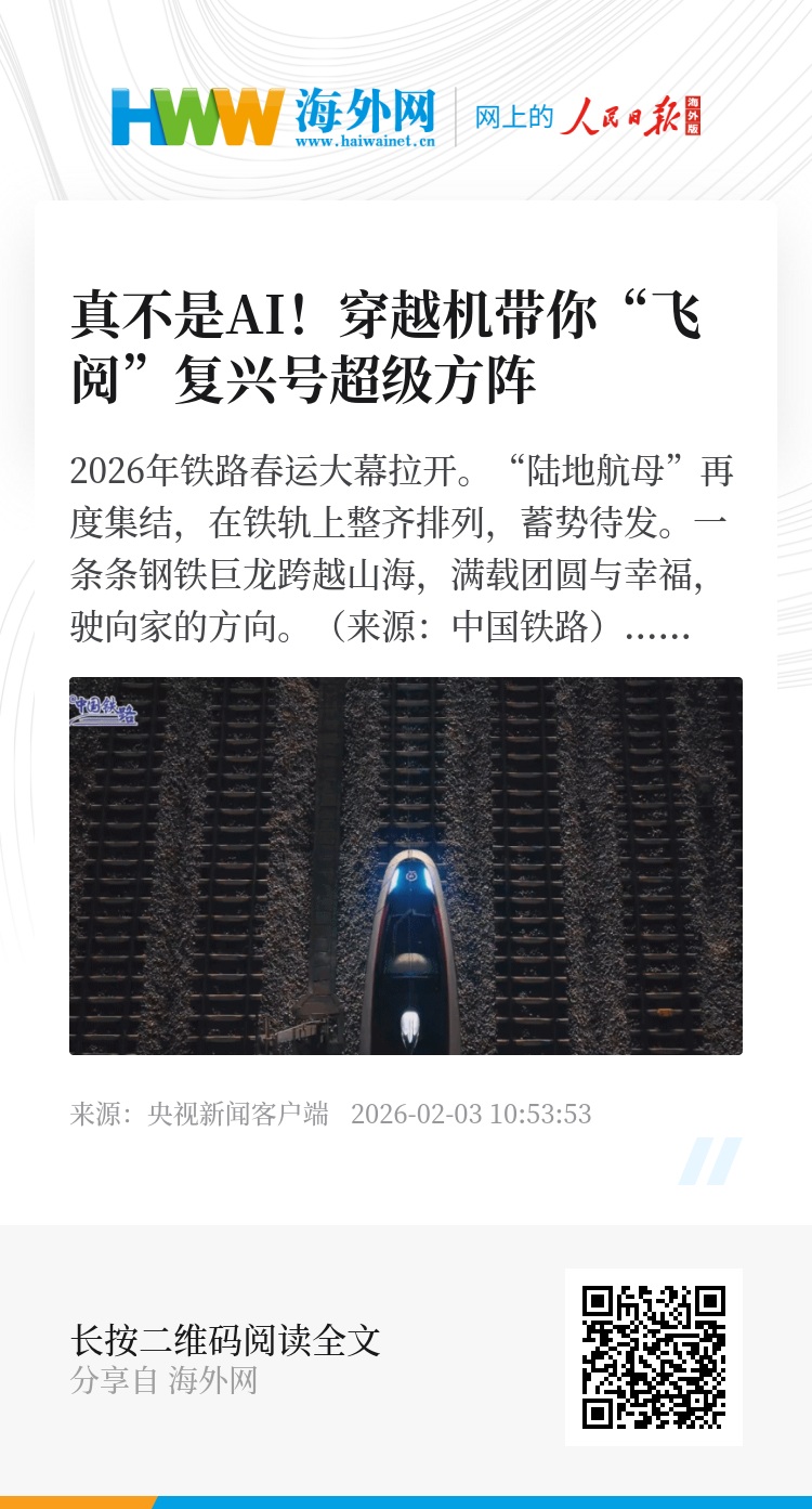 2026年铁路春运大幕拉开。“陆地航母”再度集结,在铁轨上整齐排列,蓄势待发。一条条钢铁巨龙跨越山海,满载团圆与幸福,驶向家的方向。(来源:中国铁路)