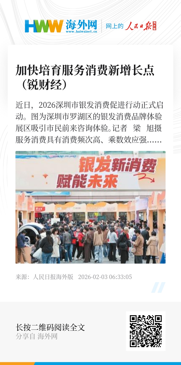 “结合具体举措看,《方案》从铁路旅游、演艺赛事、餐饮旅居等具体消费场景发力,带动上下游产业协同发展,有利于发挥服务消费覆盖面广、产业关联度高的特点,形成‘以点带面’的效果。同时,《方案》还十分注重消费场景创新和供给结构升级,鼓励发展沉浸式、体验式服务,激发居民多样化、个性化消费需求,最终推动消费从‘数量型’向‘质量型’转变。”浙江财经大学副研究员金暄暄在接受本报记者采访时说,积极增强服务供给体系韧性,将对扩内需、促就业、稳增长形成重要支撑。