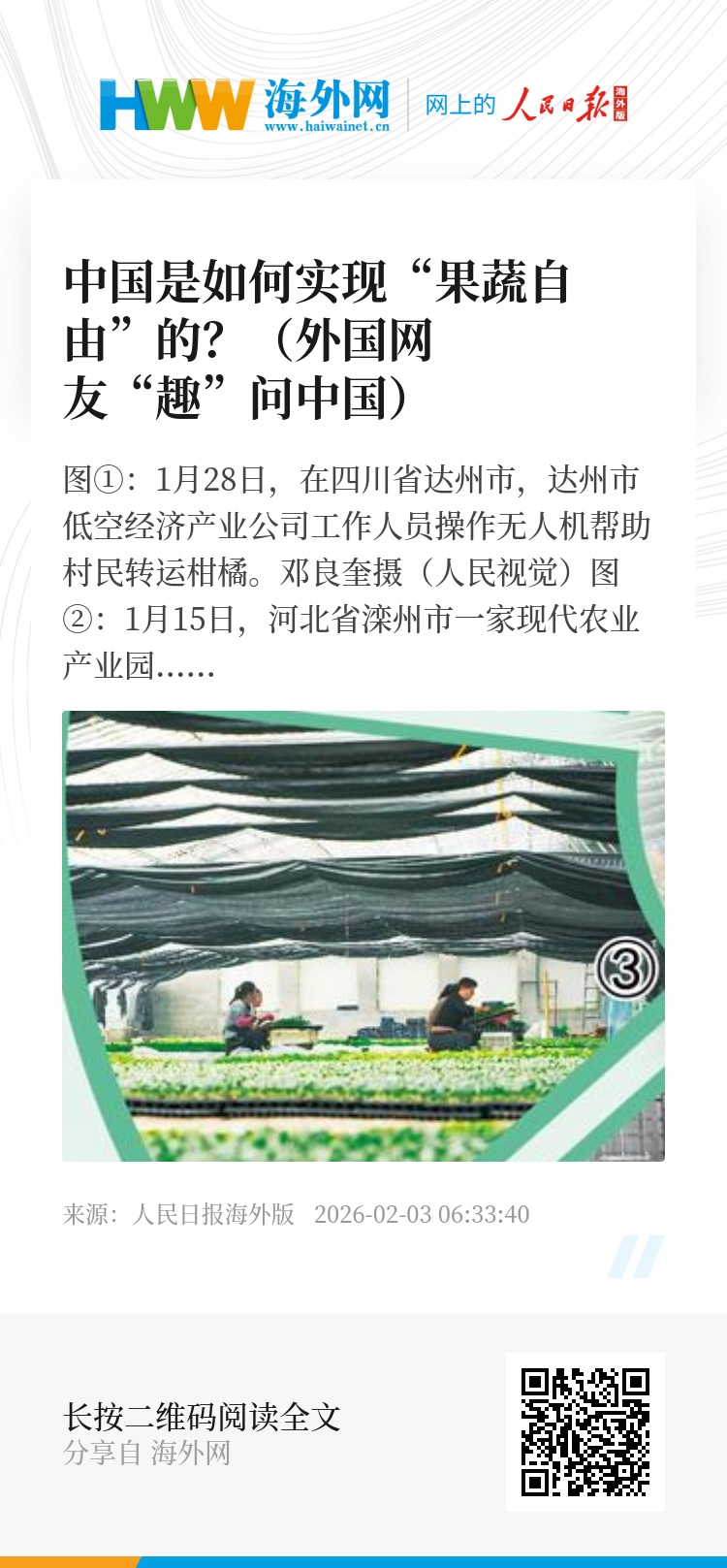 接下来,我们回到外国网友开篇的提问:中国是怎么做到果蔬品种多样、供应稳定的?