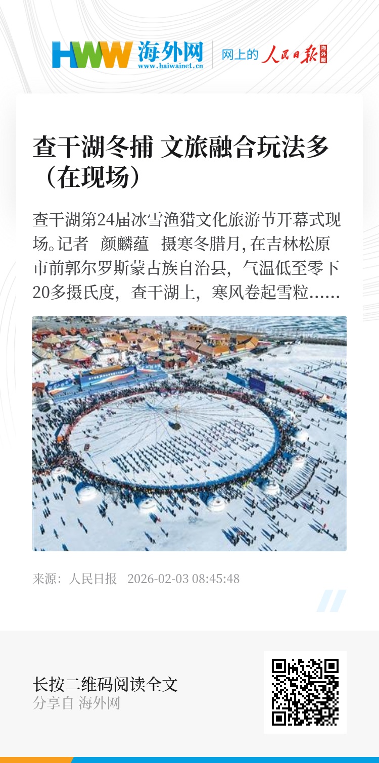 上新体验,不止于此。借力数字技术,松原市与手游平台合作,让玩家在模拟经营中体验“凿冰撒网”。“我们持续创新形式,讲好传统与现代交融的文旅故事,让五湖四海的朋友都能感受到查干湖的魅力,有兴趣来此一游。”松原市文化广播电视和旅游局相关负责人表示。(记者 刘以晴)