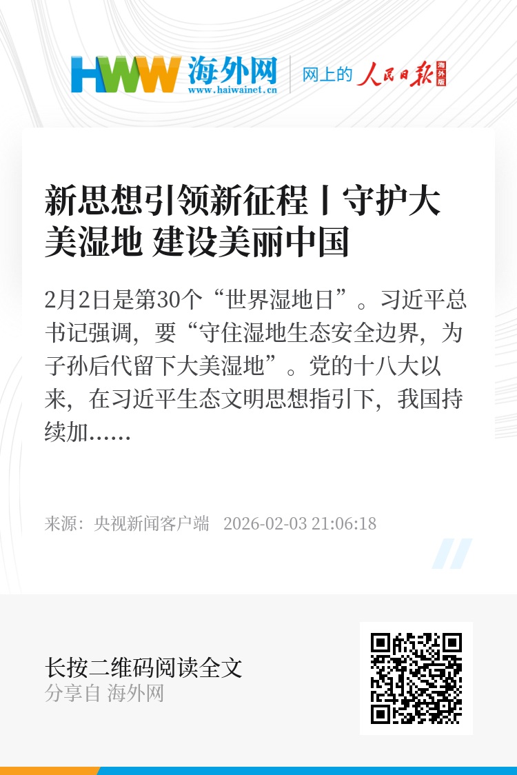 2月2日是第30个“世界湿地日”。习近平总书记强调,要“守住湿地生态安全边界,为子孙后代留下大美湿地”。