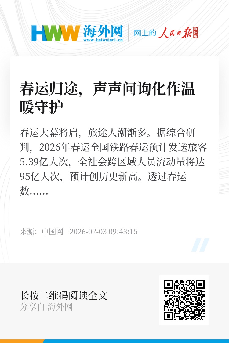 归途的守护,早已融入铁路春运的基因,成为刻进时光里的承诺。当亿万“小家”的团圆梦汇成星河,那些穿梭于车站、列车的每一个忙碌身影,便是这个时代最温柔的回响——此心安处,即是吾乡。(文/李红红;视频/闫伟、温宇轩、赵博宇)