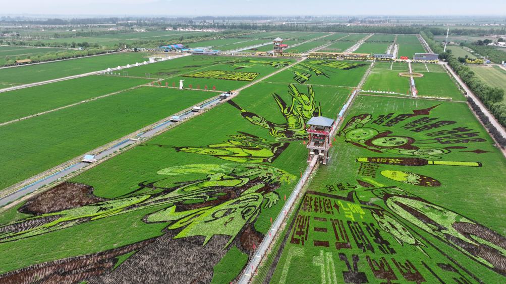 2025年6月18日,稻渔空间乡村生态观光园的巨幅稻田画(无人机照片)。新华社记者王鹏 摄